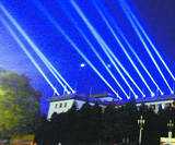 为了迎接国庆60周年,北京天安门广场各景观照明进行了一次全面升级和更新。31日凌晨,工作人员在调试天安门广场的各种灯光,只见百米高的光柱射入广场上空,异常绚丽多彩,吸引不少行人观看并拍照留念。……